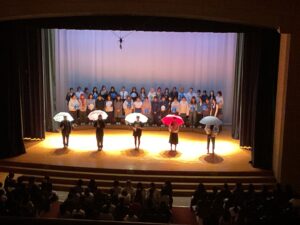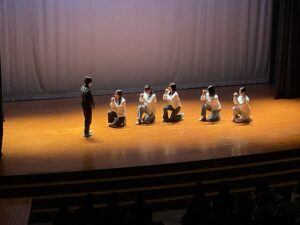 各クラス2名の演出係を中心に、場面構成や演出方法について話し合い、隊形移動や照明、音響に至るまで、生徒たち自身が一から考え、試行錯誤を重ねながら準備を進めてきました。
