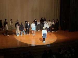 詩を劇として表現しなおすことは、作品のテーマや言葉の美しさをより深く味わうことにもつながります。中学生活も終盤を迎えた今、学年全体で力を合わせる貴重な時間を持つことができました。