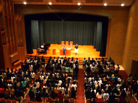 クリスマスの準備 掲載日:2016.12.16 11月27日からアドベント(待降節)に入り、クリスマスを迎える準備をしています。 中学のクリスマス礼拝では学年ごとに合唱をします。 LHRの時間に学年全体で練習をしている様子です。 各クラスの入口に手作りのリースが飾られました。 クリスマスカードを作りました。 中1では一人が2枚作り、1枚は老人ホームや養護施設等に送り、1枚はクラスメイトと交換します。 受け取ってくれる相手の喜ぶ顔を思い浮かべながら作りました。